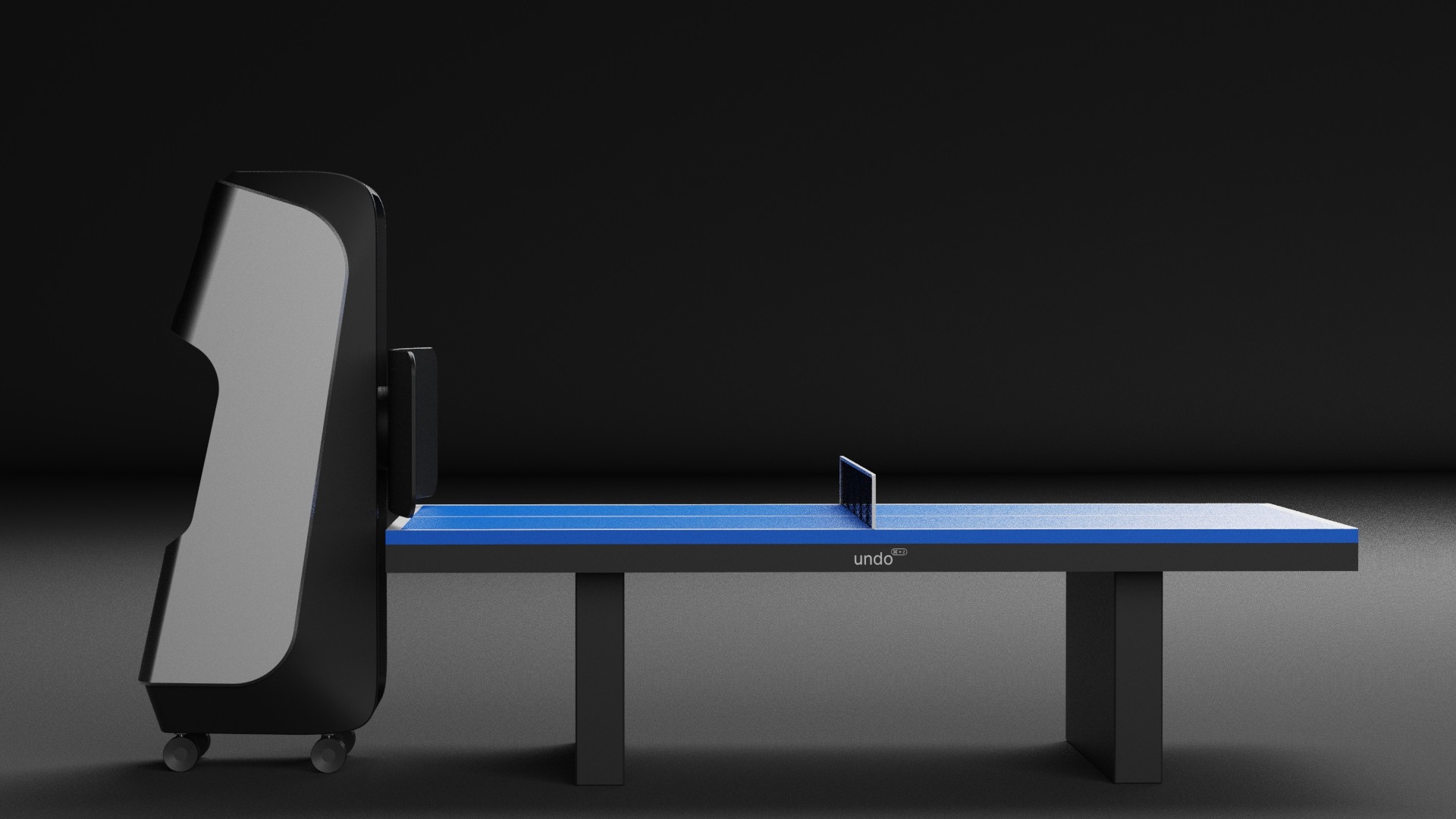 The rebound panel is stored inside the body of the machine when not in use, keeping the device compact and mobile. During play the panel unfolds and spans the width of the table. It returns the ball toward the player while also housing the vibration sensors. The machine quickly transforms from storage to active training mode.